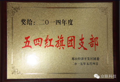 今年“五四”青年節(jié)期間,共青團(tuán)開發(fā)區(qū)委表彰了區(qū)內(nèi)一批先進(jìn)團(tuán)組織和先進(jìn)團(tuán)員,我公司榮獲了2014年度“五四紅旗團(tuán)支部”榮譽(yù)稱號(hào)。