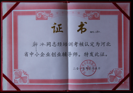 我公司參加省工信廳主辦的第九期中小企業(yè)創(chuàng)業(yè) 輔導(dǎo)師培訓(xùn)班并獲得創(chuàng)業(yè)輔導(dǎo)師資格證書
