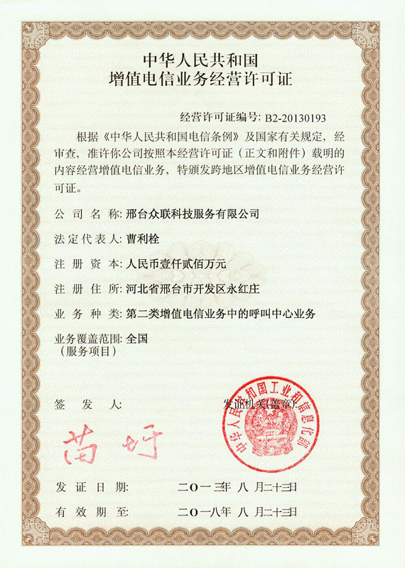 增值電信業(yè)務(wù)經(jīng)營許可證